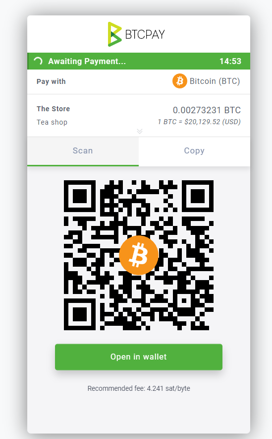 Congratulations! You have now successfully linked your Bitcoin wallet to your BTCPayServer.