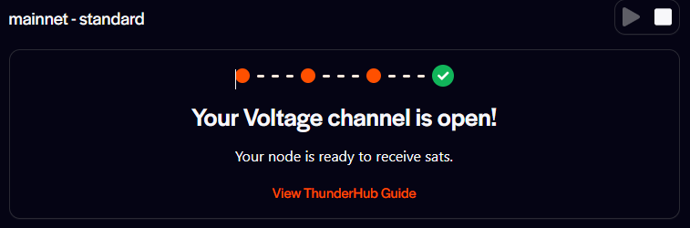 You should see a widget at the top of your node's dashboard to use this new feature. You can click the 'Request Channel' button and you're done. Our system will open a channel to your node and give you the transaction so you can watch the channel open process. As soon as your channel has 3 confirmations, it's ready to use! The widget will disappear after your channel has been opened. Currently, this feature is only available to nodes running in Voltage, but we'll be expanding liquidity services to more of the network as we develop.