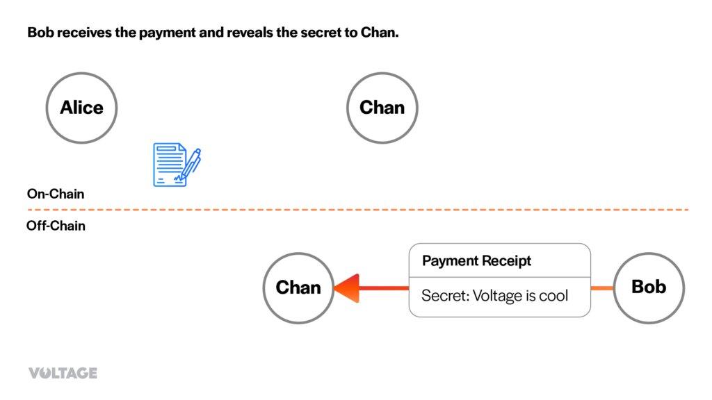 4. Bob receives the payment and reveals the secret to Chan