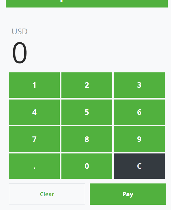 Test out your point of sale by entering an amount in USD then clicking Pay. An invoice screen will appear.