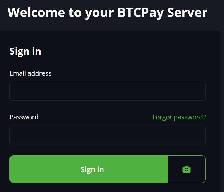 - Enter the credentials provided in previous step into the BTCPayServer login. Then click Sign in.