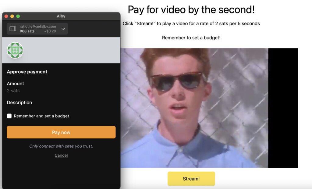 Frontend engineer Brandon has been working on a video streaming website that takes Lightning payments. Micropayments are a useful use case for Lightning Network. Today's financial system doesn't allow for small digital payments due to transaction fees. Brandon explores a website where the video cost two satoshis for every five seconds of the video. (He demoed this on the Rick Roll video, but of course.) Behind the scenes, the project's using WebLN, a standard for making lightning payments on the Web.