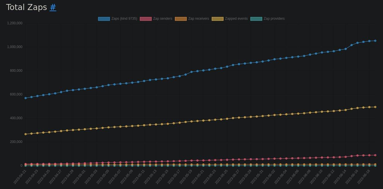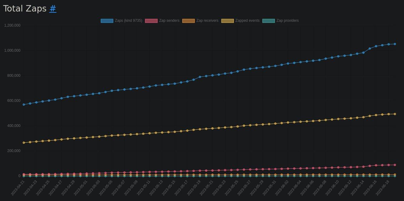This is an average of 8,300 zaps per day, an impressive number for a network that is yet to surpass 3,000 daily active users. To put it in perspective, Twitter has about 260 million active users.