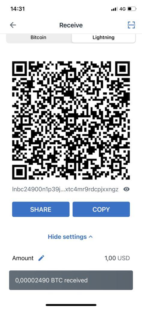 We now have an invoice that should be payable with your wallet: