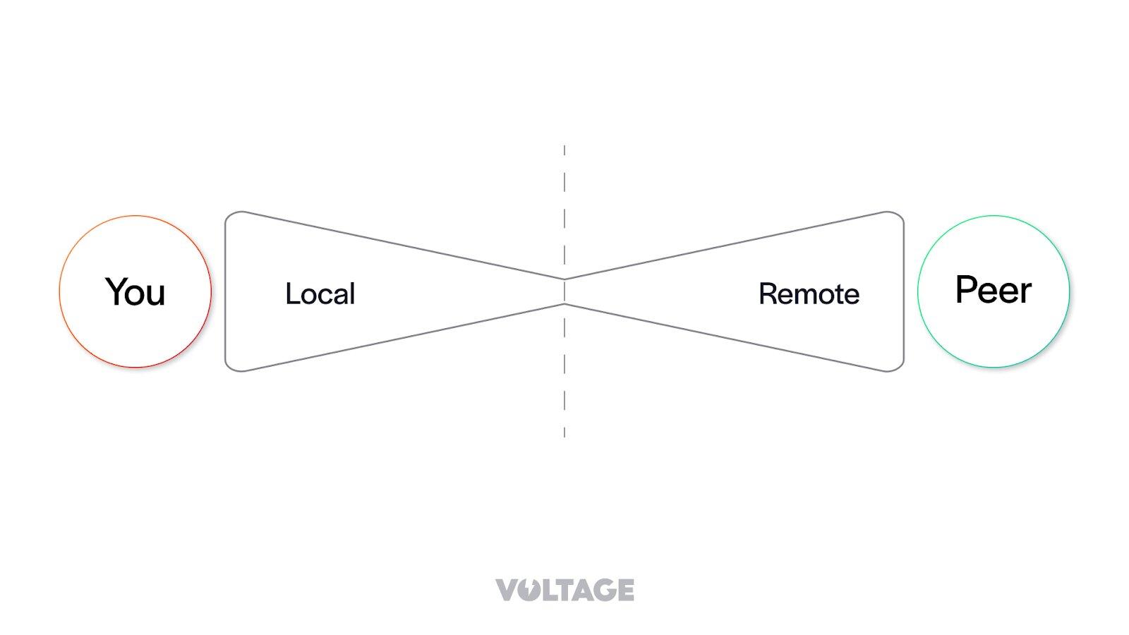 The Lightning Network works as a channel-based payment system. You can think of a Lightning Channel as an hourglass, where the sand represents bitcoins that are locked in the channel. As in an hourglass, the Lightning Channel has two sides. We call it the “local” and “remote” side of the channel.