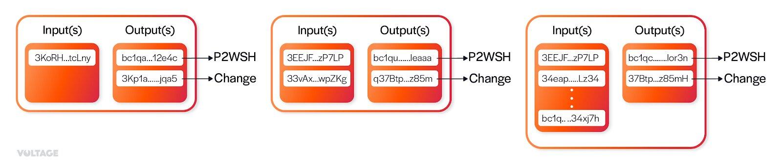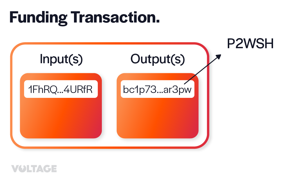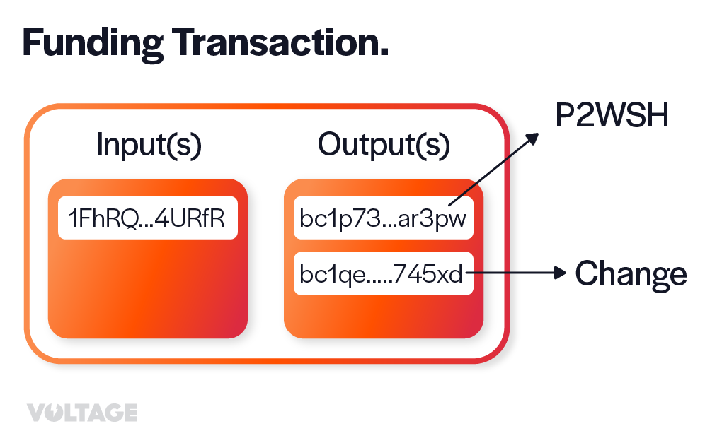 ## Examining Funding Transactions On-Chain Overall, the funding transaction will have two outputs: the P2WSH that encodes the 2-of-2 multi-signature script and the change output. And it can have a variable amount of inputs. There is no way to look only at a funding transaction on-chain and be sure that it’s actually a funding transaction.